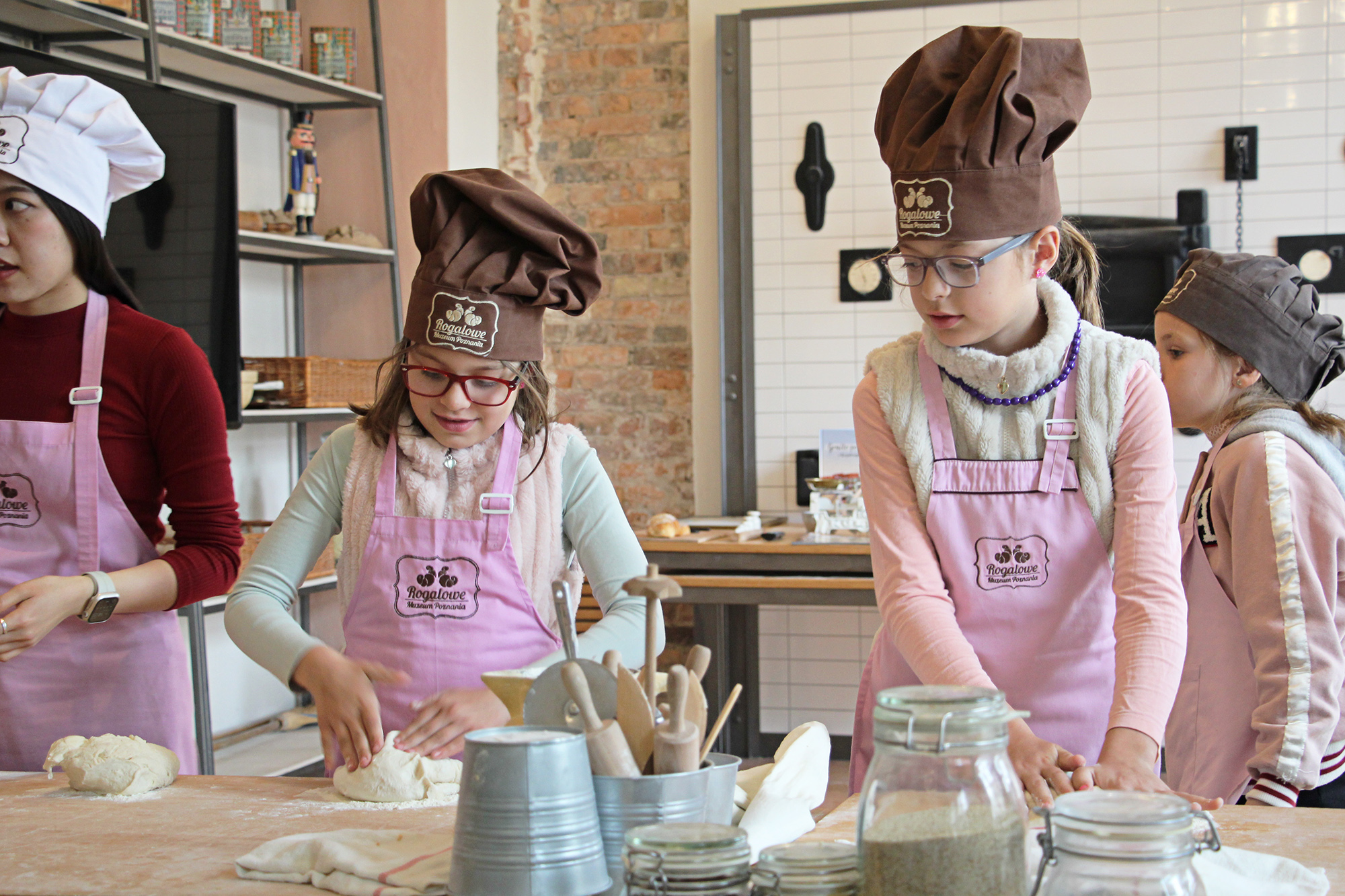 Перед поездкой Мие был предоставлен список из полутора десятков аттракций, после чего она должна была выбрать, какие именно ей хотелось бы посетить в день рождения. Выбор не слишком отличался от краковского праздника три года назад, но обо всем по порядку. Утро началось с завтрака в уютном небольшом кафе Старого города (праздничные панкейки прилагались), после чего мы отправились в первый пункт Мииной программы – тот самый Новый зоопарк, отчет о котором несколько лет назад был озаглавлен Великий пеший поход. Этот огромный (120 гектаров!) парк включает в себя четыре (!) озера, невероятное количество пеших тропинок и самый большой в Польше слоновник (пешком добираться до него больше часа). Красивые озера, цветущие фруктовые деревья, редкие вкрапления животных, которым, впрочем, предоставлена огромная территория – у медведей здесь свой личный лес – в общем, прогулка была приятной, хоть и очень, очень долгой. После многих тысяч шагов и пары десятков животных мы сдались, увидев небольшой поезд, курсировавший по гигантской территории, и к выходу добирались уже на колесах. Дальше нас ждал ранний обед – мы вернулись в Старый город и прогулялись по очень приятному пешеходному бульвару Полвейска, с множеством магазинов и ресторанчиков, где, для начала, заглянули в филиал сувенирного магазина Folkstar (были в нем и во Вроцлаве), после чего быстренько пообедали в крайне удачном заведении на том же бульваре, специализировавшемся на национальном блюде польской кухни под названием pierogi – что-то вроде вареников с самыми разными начинками. Нам так понравилось, что мы договорились вернуться сюда же завтра, чтоб как следует все распробовать, а сейчас надо было торопиться: следующий пункт, выбранный Мией, подразумевал точное время. В 2 мы уже стояли у музея круассана в Старом городе – и шоу началось. Нам довольно живо и с хорошей порцией юмора рассказали о познаньских круассанах (скорее, рогаликах) святого Мартина – изделие из теста в форме лошадиной подковы с начинкой из ореховой пасты. Добровольцев (среди них были и девочки) нарядили в поварской прикид и они по очереди выполняли различные задания ведущих это мероприятие поваров – месили, раскатывали, начиняли, сворачивали. Было интересно. В конце мы полюбовались теми самыми козликами на ратуше (окна выходили прямо на нее) и послушали трубача, после чего отправились на другой конец города, где расположился выбранный Мией джимбори – неплохо оснащенный зал с батутами, лазалками, прыгалками и прочими крайне приятными для детей вещами. Обратно пришлось добираться на двух (в одно пять человек не пускают) такси – идти до остановки сил уже не было. В такси дети, естественно, заснули. Вернувшись (в третий раз за сегодня) в Старый город, мы пошли в очень симпатичный ресторан на главной площади, чтобы поставить вкусную точку праздничного дня. Расти нам, Мия, здоровой и счастливой!