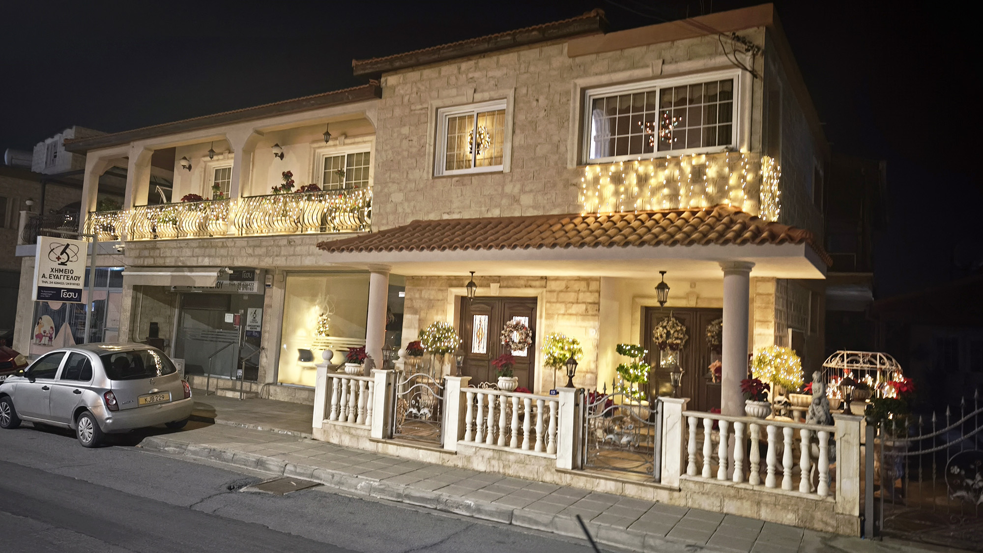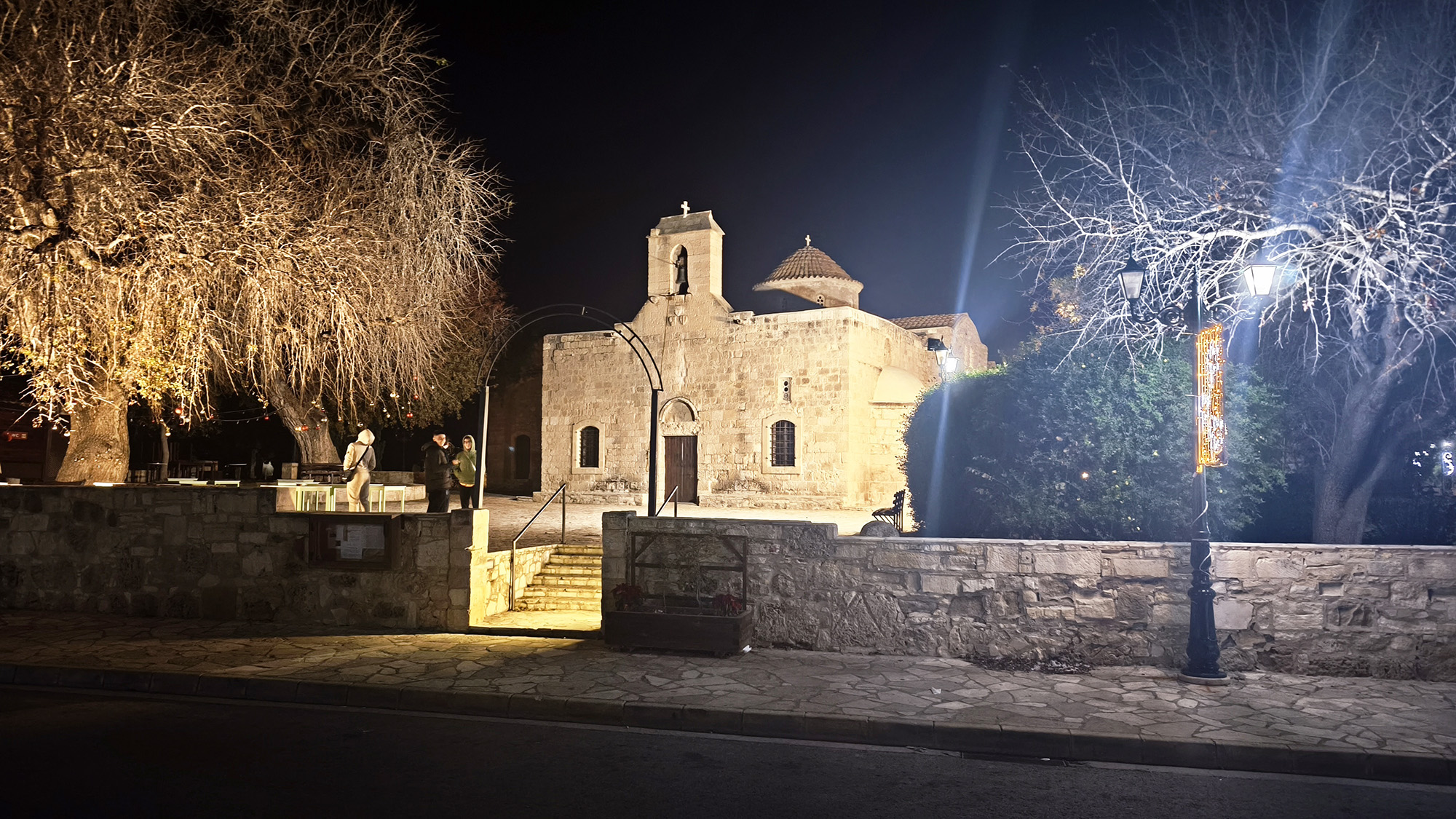 В последний день на Кипре (самолёт наш вылетал завтрашним утречком в 6) мы занимались всем, чем должны были согласно плану (которого не было) поездки: поздно встали, поели, поиграли в футбол на детской площадке, пообедали в старом добром “Кокосе” (постарались заказать поменьше… не помогло). Вечером, помимо сбора чемоданов, мы хотели сгонять на такси в соседнюю деревню, под добрым названием Кити (Hello, Kiti), побольше нашей Периволии (тысячи на две жителей), а значит красиво украшенную к Рождеству. Вообще, на Кипре есть специальные туры в несколько деревень, специализирующихся на рождественских праздниках: в них проводятся различные ярмарки, проходят представления, а улочки очень красиво украшены тысячами светящихся огоньков. В поисках чего-то подобного мы и решили поехать в Кити. Сказать легко, сделать чуть сложнее: дело в том, что речь идет о поездке из одной деревни в другую (расположены они совсем рядом), все компании такси находятся, как несложно догадаться, в Ларнаке, поэтому водителей, которых вызывают в Периволию, не слишком прельщает перспектива мотать из Ларнаки километров 15 чтобы подвезти кого-то на два километра до Кити. В общем, поискав варианты в различных аппликациях (и не найдя таковых вообще) мы решили пойти пешком. Недалеко же, хоть и вечер. В целом, дошли нормально, хотя дорога и освещалась временами только фонариками наших телефонов, а часть ее проходила конкретно по полю. Сама деревушка, где каждый сосед явно пытался показать другому, что его дом украшен к Рождеству лучше, нам понравилась, хотя ярмарка на центральной площади и была довольно скромной, а глинтвейна, которого по традиции взял себе Егор, налили безбожно мало. Погуляв по украшенным улочкам, сопровождаемые воплями (тут надо пояснить: на площади шло представление для детей, а местные власти решили, что слышать его должня вся немаленькая деревня, поэтому колонки, висевшие буквально на каждом столбе, орали, транслируя представление, и за 10 кварталов от площади), мы отправились ужинать в местный паб. То, что там не только наливают, но еще и неплохо кормят стало понятно, когда еще у входа мы заметили у одной из посетительниц порцию ребрышек величиной со стол. Напротив этого крайне вкусного заведения оказалась еще одна старинная церковь, Панагия тис Ангелоктистис (уж простите наш греческий), деревянную основу которой заложили аж в 5 веке, а каменное здание построили в 11-м. После ужина мы на подвиги готовы не были, так что в пабе по нашей просьбе нашли-таки такси, которое нас и довезло без шума и пыли минут за пять. Оставалось лишь дособирать чемоданы и поспать пару часов.